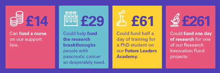Here is how the money raised can help Pancreatic cancer transform the future for people effected. To find out more about Pancreatic cancer click here: https://www.pancreaticcancer.org.uk/